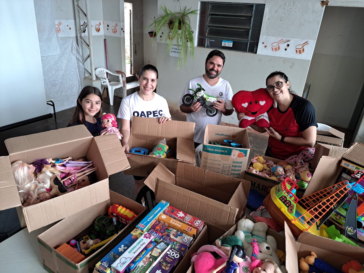 Em 2023, o Colégio OAPEC levou centenas de brinquedos e livros infantis, criando a 1ª Loja da VAL. Foto: acervo Vaquinha do Alimento