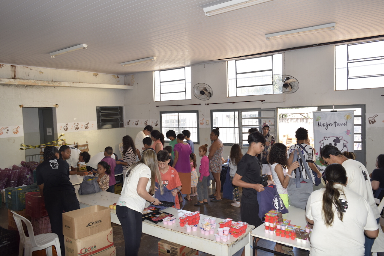 Itens novos para escolher – Criada em 2023, quando a Vaquinha do Alimento completou 5 anos, a Loja da VAL reúne brinquedos novos e seminovos para as crianças menores e roupas e acessórios para os adolescentes, além de material escolar para todas as idades. "É uma loja linda, onde a criança entra e tem a ajuda de uma "vendedora" para escolher o objeto que quiser", explica Flavia, acrescentando que ao receber o kit mensal da Vaquinha do Alimento, cada participante ganha uma moeda simbólica para fazer a sua compra. "É muito importante proporcionar o exercício da escolha entre esse público que vai dos 3 aos 17 anos", avalia a jornalista que criou um sistema de rodízio de doadores para garantir a distribuição mensal de kits de mais de 6kg de alimentos que considera saudáveis, incluindo frutas, legumes, laticínios, panificação e proteínas. "Também incluímos o sorvete, que a criança tem a chance de escolher o sabor, a cada edição da Vaquinha do Alimento", conta.